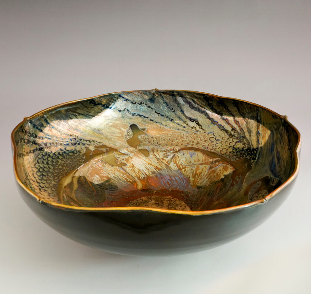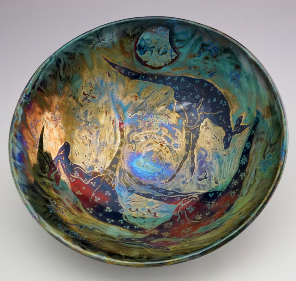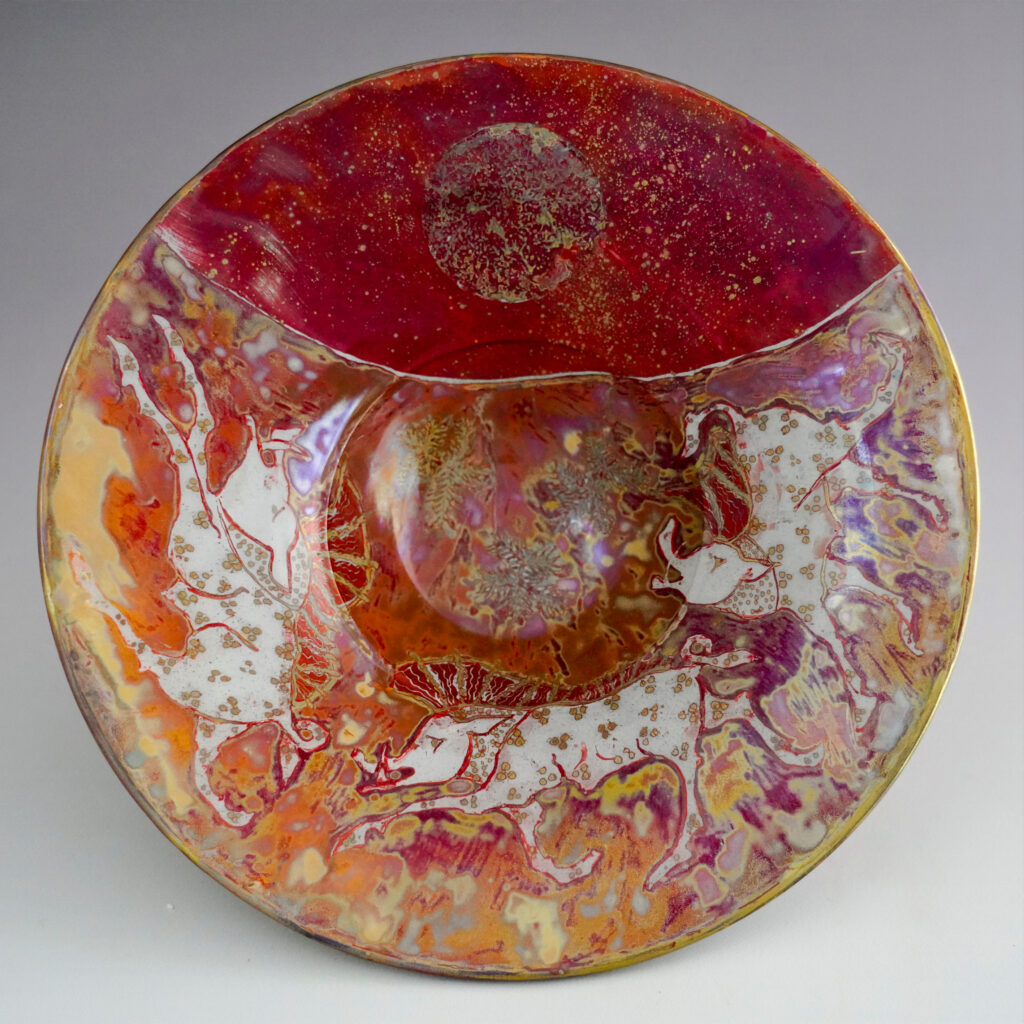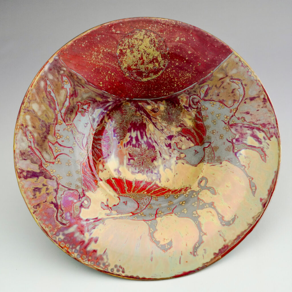 Fox and Hares 2006 (33cms x 9cms)Fox and Hares 2006 (31cms x 8cms) Lyrebird Charger 2006 (36cms x 8cms)Moonlight and Hares 2008 (36cms x 7cms)Three Graces 2017 (27cms x 11cms)Three Graces 2017 (27cms x 11cms)Three Finches Bowl 2006 (23cms x 8cms)Rainforest Charger 2013 (37cms x 12cms)Fish and World 2013 (36cms x 14cms)Running ‘Roos Bowl 2008Diving Cormorant 2013 (25cms x 7cms)Three Grotesque Fish 2022 (28cs x 10cms)Gazelle Ewer 2020 (34cmx x 12cms)Sirens Ewer 2022 (35cms x 22cms)Running Boars Ewer 2022 (36cms x 19cms)Grotesque Fish Ewer 2020 (37cms x 20cms)Lion Lustre Ewer 2020 (26cms x 26cms)Fierce Leopard Lustre Ewer 2023 (25cms x 21cms)Orvieto Sirena with Mirror 2025 (37cms x 35cms)Grotesque Fish Plate 2022 (24cms x 4cms)Four Rainforest Birds 2025 (28cms x 8cms)